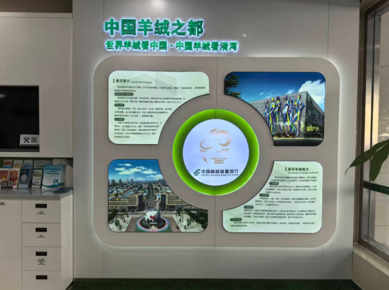 为了让金融服务更贴合羊绒产业发展需求,邮储银行清河县支行倾力打造羊绒产业特色支行,将网点打造成集业务办理、产业展示、交流互动于一体的综合服务平台。